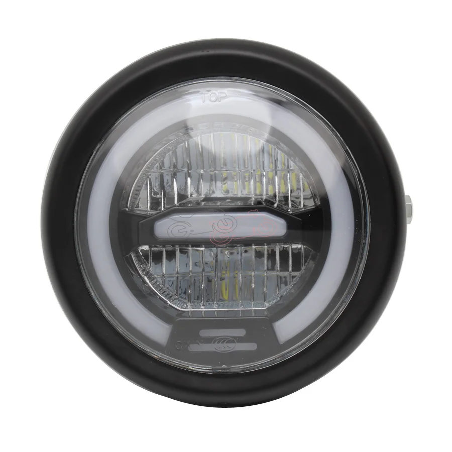 .image of Universal Fit 7" White LED Headlamp Motorcycle Hi/Low Beam Headlight+White Angel Light for Harley F