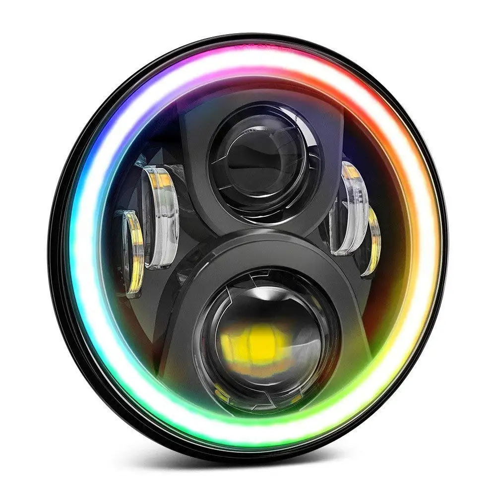 .image for 1pcs RGB Halo 7" Led H4 Motorcycle Headlight Headlamp App Bluetooth Remote Controlled LED HeadLight